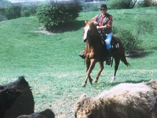 In 1985 I started importing Galloway Cattle from Scotland to the countryside of Lübeck where I live. I was conducting an environmental experiment with these cattle in an attempt to bring back the natural meadows and habitats. In order to make this new ranch work possible, I had to switch to a well trained American Quarter horse. Horseback riding was more fun than ever. My experiment has now become a 600 acre nature reserve and a model of landscape management used around Europe by environmentalists.